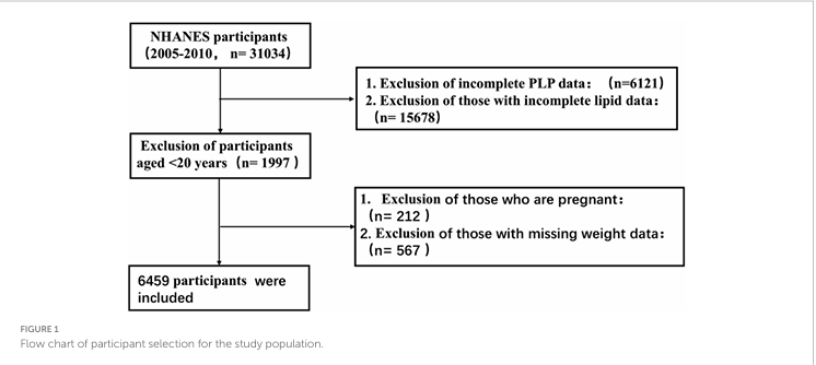 本研究利用 NHANES(美国国家健康和营养检查调查)数据库,对 14,042 名成年人进行了深入分析,旨在查明循环 PLP 浓度对血脂风险的预测价值。