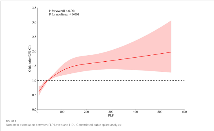 令人振奋的是,PLP 水平与 HDL-C 呈现显著的正相关。HDL-C 负责将血管中的胆固醇运回肝脏处理,被誉为“血管清道夫”,而 PLP 正是增强这一过程的重要催化剂。